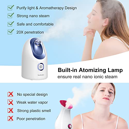 [Enhanced Technology] The facial steamer helps eradicating the dust and impurities of your pores and skin with the assistance of the comfortable nano steam mixed with ionic water particles which is 20x more practical in penetrating the pores and skin and is designed with an unique built-in atomizing lamp. The steam could be absorbed by your pores and skin within the efficient situation.